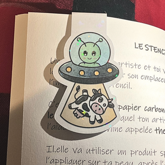 Marque-page magnétique entièrement fait maison, du design à la fabrication et l'emballage. Il saura garder ta page sans tomber du livre, et avec style !